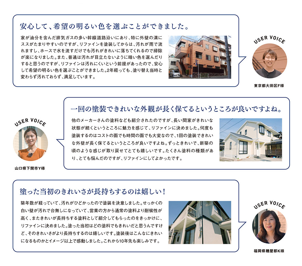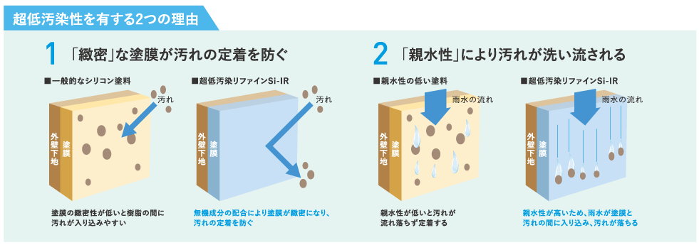付着した汚れを雨水が洗い流すため、汚れが定着しにくく、美観の長期保存に貢献します。