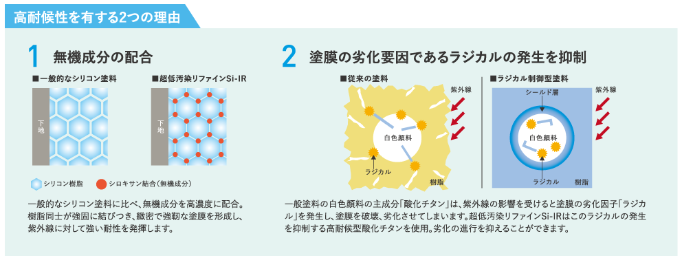 塗料の劣化原因である紫外線に強い耐候性を発揮します。
