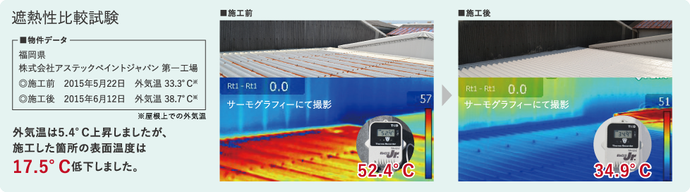 優れた遮熱性により室内の温度上昇を抑え生活環境を快適にします。またその遮熱効果は長期間続きます。