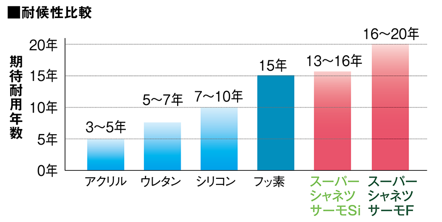 美しさがずっと続く「美壁」は、長期間に渡り遮熱効果も発揮し続けます。