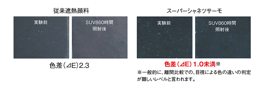 屋根に特に起こりやすい「変色」「退色」のリスクを大幅軽減します。